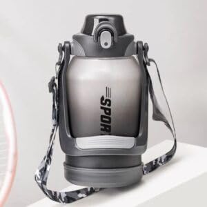 Generic - زجاجة مياه سعة 1500 مل مع ماصة، مناسبة للصالات الرياضية والجامعات، مع مقبض لسهولة الحمل. اسود
