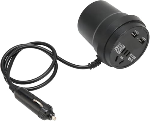 Generic - عاكس كهربائي للسيارة ايه بي اس أسود 150 وات، تيار مستمر 12-24 فولت إلى تيار متردد 110 فولت - 220 فولت، محول طاقة للسيارة بمنفذين USB
