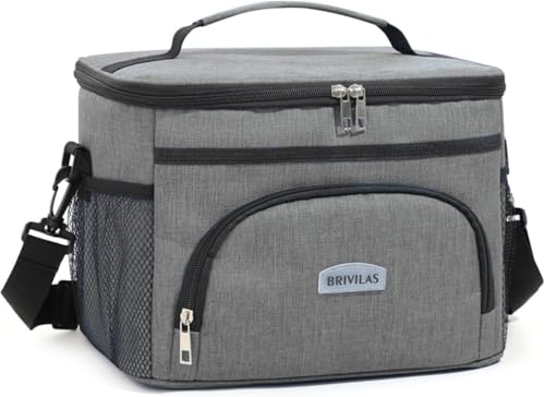 Generic - شنطة غداء معزولة سعة 15 لتر - سعة كبيرة حرارية لتخزين الطعام والمشروبات للعمل والسفر (رمادي)