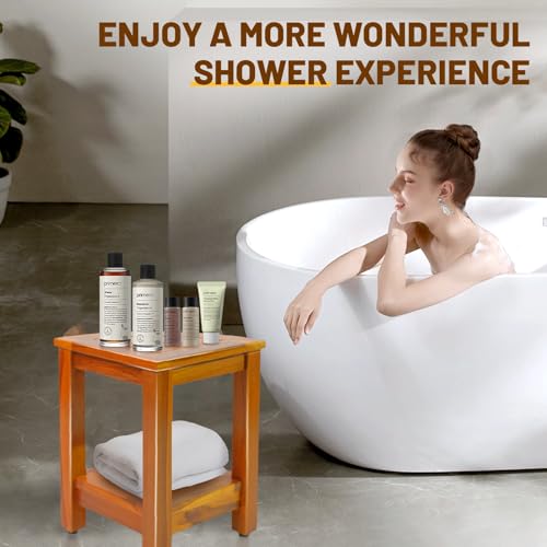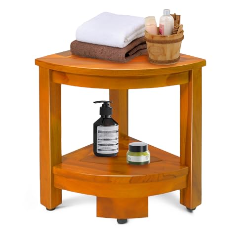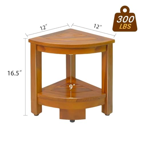 GRBEEVIITEK - كرسي زاوية للاستحمام من خشب الساج بقياس 42 سم مع رف للتخزين لحلاقة الساقين، من أجل الاستخدام داخل الدش بمسند قدم مقاوم للماء، مناسب للحمام وللاستخدام الداخلي والخارجي