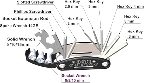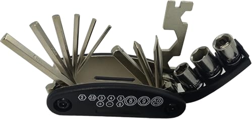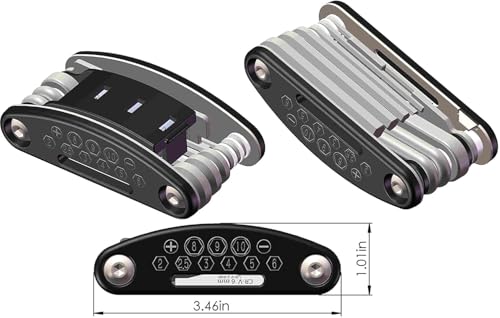 - تصميم متعدد الاستخدامات: أداة متعددة لإصلاح الدراجات 16 في 1 تتميز بمفاتيح ربط سداسية أساسية ومفكات براغي ومفاتيح ربط بتصميم مدمج قابل للطي