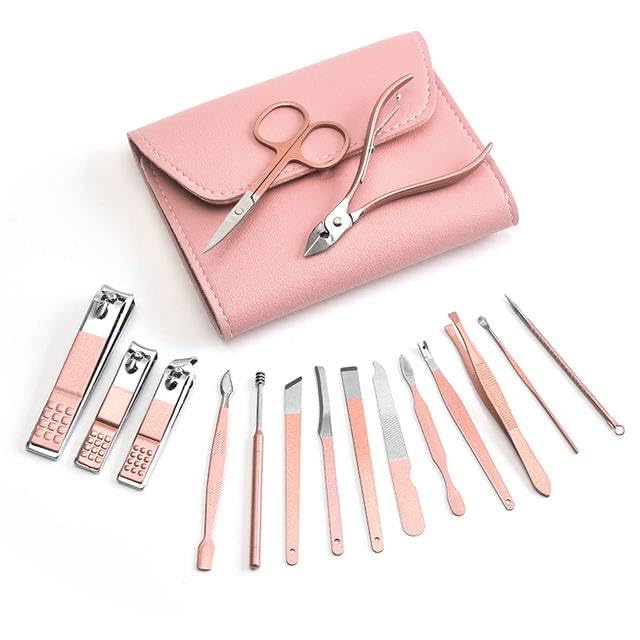 Nutrascience - مجموعة قصافة اظافر احترافية محمولة 16 في 1 مع مبرد اظافر ومجموعة باديكير ومقص للعناية بالحواجب وشنطة جلدية مصنوعة يدويا، مناسبة للعائلة وفي اي مكان للسفر