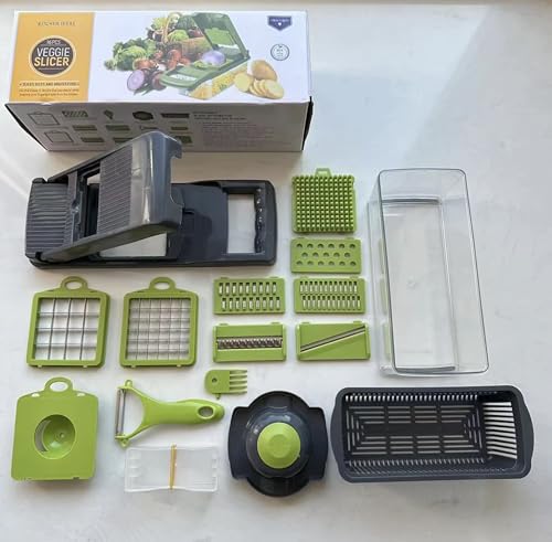 Generic - قطاعة خضروات 16 في 1، قطاعة طعام احترافية مع حاوية متعددة الوظائف للبصل والثوم والجزر، قطاعة خضروات شديدة التحمل لسهولة تحضير الوجبات