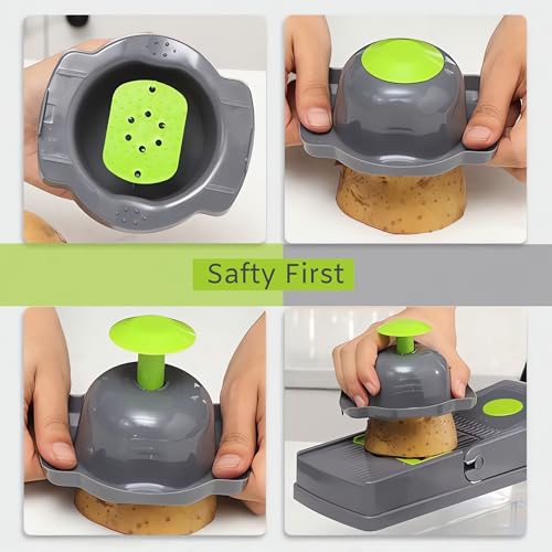 - 【شفرات من الستانلس ستيل فائقة الصلابة】تتضمن مجموعة كاملة من الشفرات القابلة للتبديل المصنوعة من الستانلس ستيل الممتاز المقاوم للصدأ. قم بإعداد البصل والجزر والبطاطس والفراولة والثوم والخيار والجبن وغيرها من المواد الغذائية الأساسية للطهي أو الوجبات الخفيفة. رائعة لصنع رقائق البطاطس والبصل المفروم والبطاطس المقلية.