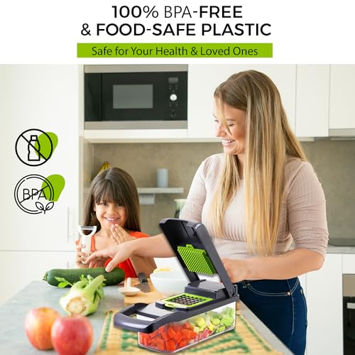 - ️【أداة مطبخ الكل في واحد لسهولة التحضير】تجمع هذه الأداة القوية بين قطاعة الخضروات وقطاعة المندولين ومفرمة الثوم ومبشرة الجبن ومحضر الطعام في جهاز واحد. قم بتقطيع وتقطيع وتمزيق طريقك من خلال المكونات - مثالية للسلطات والبطاطس المقلية وأوعية الفاكهة وأكثر من ذلك.