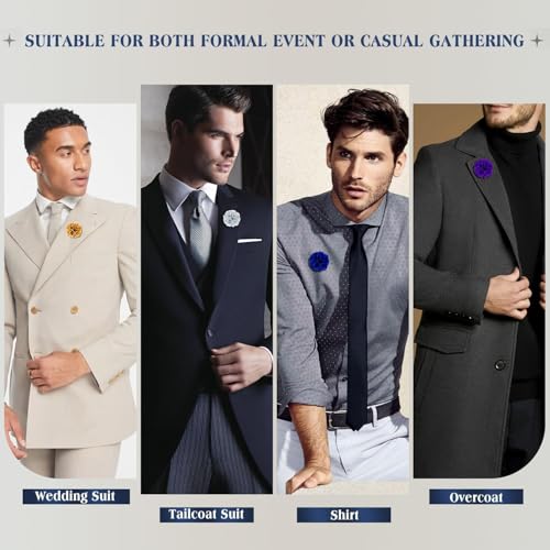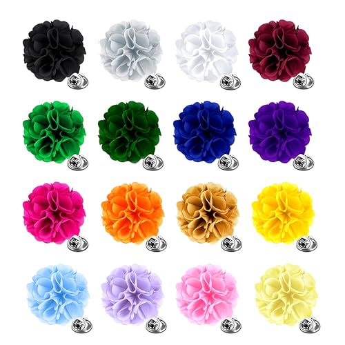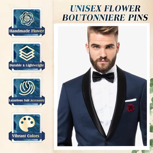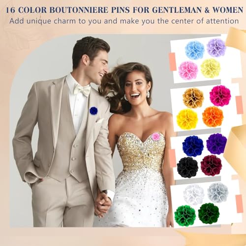 createreedo - دبابيس بروش زهور للرجال لتزيين البدل، اكسسوارات رسمية يدوية الصنع مقاوم للبقع للعرسان، مجموعة دبابيس أزرار مع علبة هدية لحفلات الزفاف للرجال والنساء، مقاس4 سم، عبوة من 16 قطعة