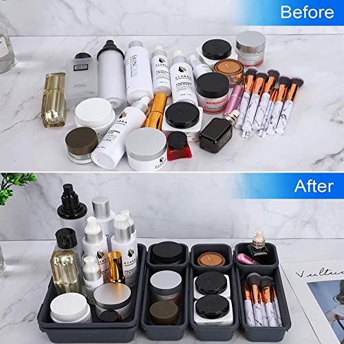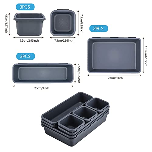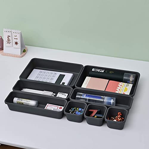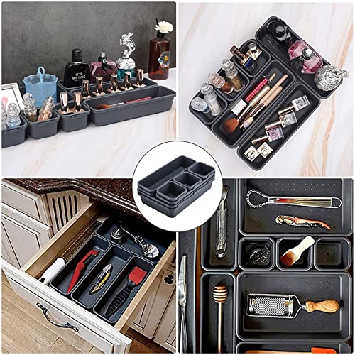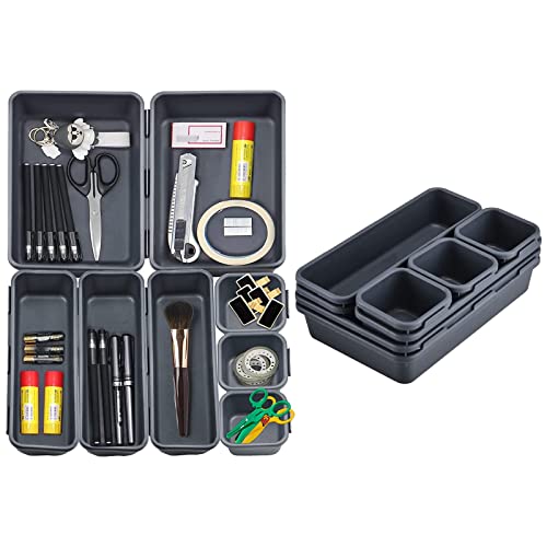 FLOTRUTE - منظم للأدراج، صندوق تخزين ملحقات للأدراج، صندوق تخزين للمكتب والمنزل، منظم للأدراج، منظم صندوق تخزين قابل للغسيل (لون رمادي غامق)، 16 قطعة
