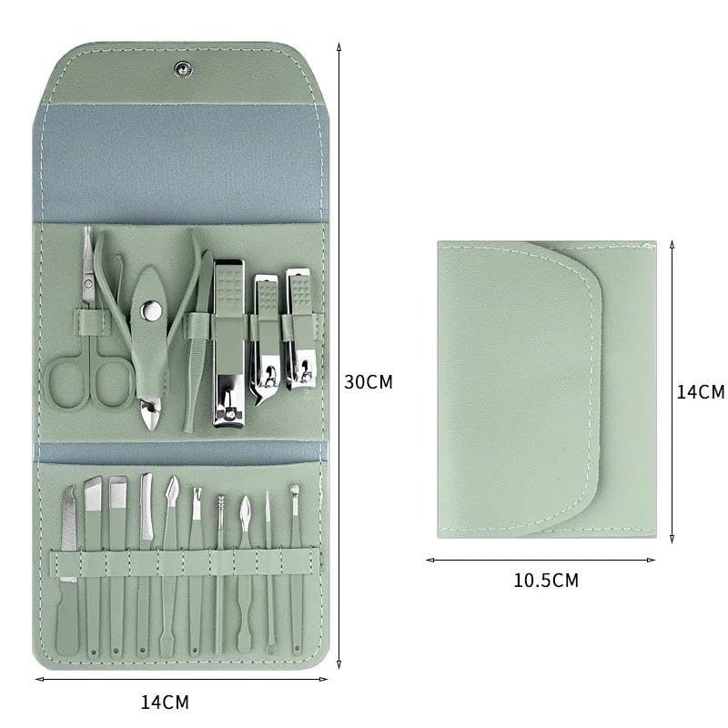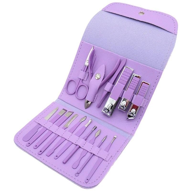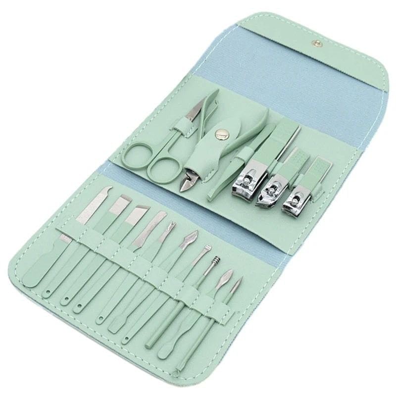 Generic - مجموعة العناية بالأظافر من الستانلس ستيل مكونة من 16 قطعة مع شنطة جلد صناعي، مانيكير وباديكير احترافية للرجال والنساء للمنزل والسفر