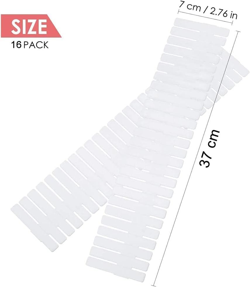 GTVGJH - فواصل الأدراج، منظم أدراج قابل للتعديل للجوارب والملابس الداخلية والمكياج يمكن أن يساعد في ترتيب المطبخ وغرفة النوم ودولاب الملابس، عبوة من 16 قطعة، لون أبيض