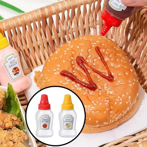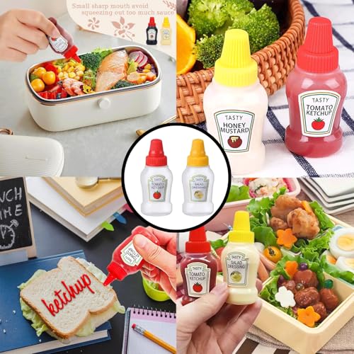 Mimalexin - مجموعة زجاجات صغيرة قابلة للضغط من 16 قطعة، زجاجات صلصة الكاتشب والعسل والخردل سعة 25 مل، حاويات قابلة لاعادة الملء للصلصة، زجاجات بلاستيكية محمولة، موزعات التوابل لصندوق الغداء