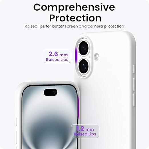 - جراب حماية خلفي لموبايل آيفون 17 من جل السيليكون السائل الناعم لحماية كاملة من الصدمات بلمسة نهائية غير لامعة وبطانة ناعمة من المايكروفايبر (أبيض)