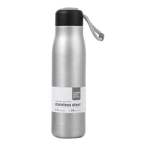 Dusgut - زجاجة مياه من الفولاذ المقاوم للصدأ سعة 476 مل بجدار مزدوج معزول بتفريغ الهواء للأطفال مع غطاء محمول مانع للتسرب (فضي)