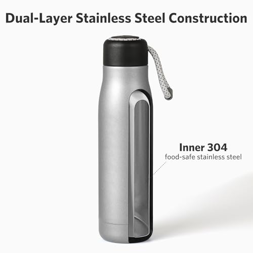 - غطاء قابل للربط ومانع للتسرب: حلقة سيليكون عالية الجودة تضمن إحكام الغلق ومقاومة للتسرب. املأ زجاجتك بمشروباتك المفضلة واشعر بالانتعاش طوال اليوم. جميع الأجزاء آمنة للاستخدام في الرف العلوي من غسالة الأطباق.
