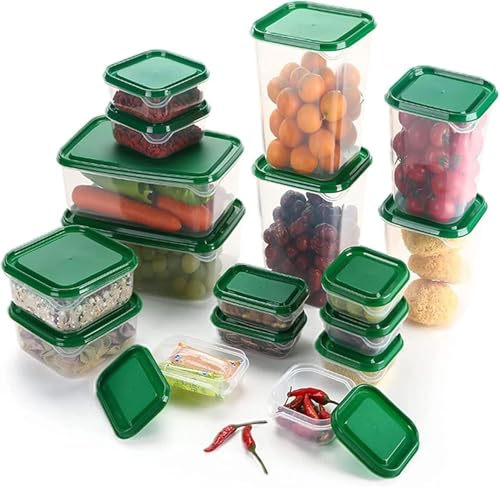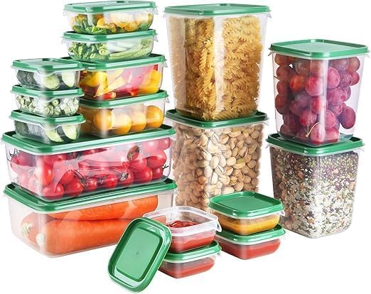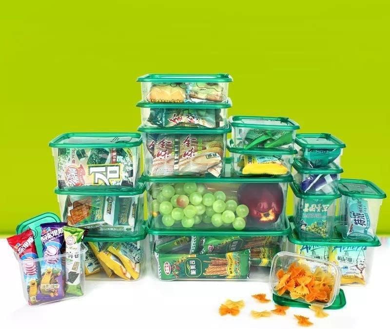 - طقم متكامل مكون من 17 علبة تخزين متعددة المقاسات لتلبية جميع احتياجاتك في المطبخ والثلاجة.