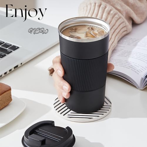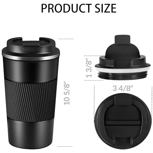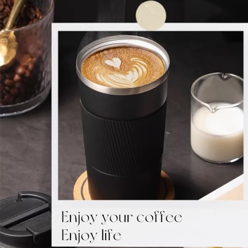 UNIDALIFE - كوب قهوة معزول بتفريغ الهواء سعة 17 اونصة مع غطاء قلاب مانع للتسرب من الستانلس ستيل للقهوة الساخنة والباردة والقهوة والحليب والشاي في المكتب والمنزل والمدرسة والسيارة والسفر والتخييم (اسود)