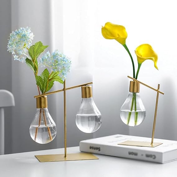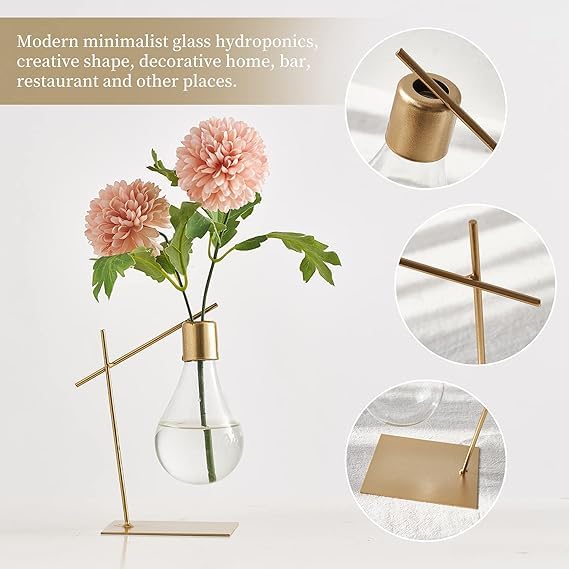 Generic - فازة لمبة ذهبي ديكور معدني للبيت والمكتب مقاس 18 سم تنفع كقطعة فنية عصرية أو منظم عملي للزهور أو الأدوات وتضيف لمسة فنية بسيطة لكل ركن | من عام