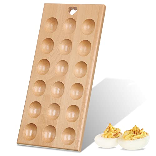 generic - طبق بيض خشبي قابل للعكس بـ18 فتحة ولوح تشاركوتيري مقاس 15.75 انش × 7 انش × 0.75 انش، صينية بيض ريفية، حامل بيض خشبي لسطح الطاولة، حامل بيض (18 حامل بيضة)