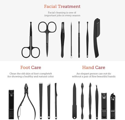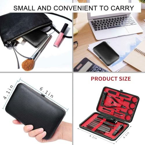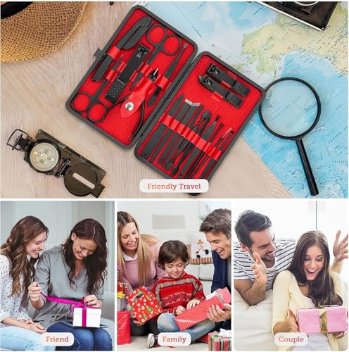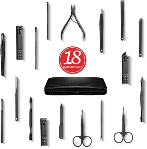 Bubuxy - طقم عناية بالأظافر احترافي 18 في 1، يشمل مقصات أظافر، أدوات باديكير، مجموعة لتشذيب الحواجب، وأدوات للعناية بالأظافر، يأتي في شنطة جلدية فاخرة محمولة