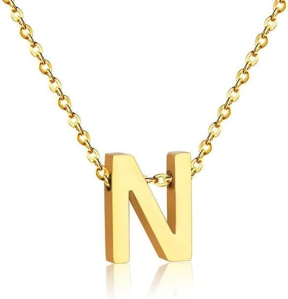 Generic - قلادة حروف صغيرة مطلية بالذهب عيار 18 قيراط من الستانلس ستيل، قلادة حروف شخصية مخصصة، قلادة اسم متعددة الأحرف للنساء والفتيات وتناسب جميع الأشخاص من ميدوسا ستور (حرف N)