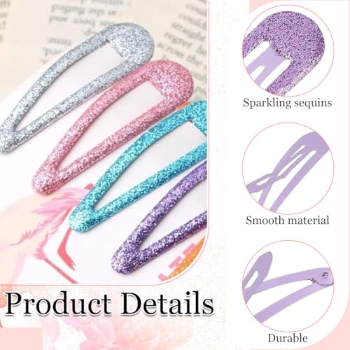 ZOWEXIQ - مشابك شعر بكباسين معدنية ملونة ومزينة بالجليتر والترتر تستخدم كاكسسوارات للشعر، 18 قطعة