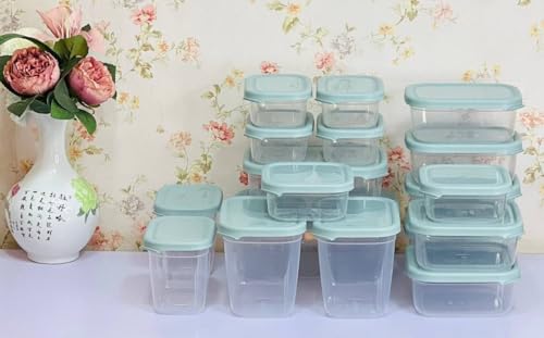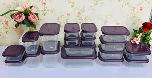 - طقم متكامل مكون من 18 علبة بأحجام متنوعة لتلبية جميع احتياجات التخزين.