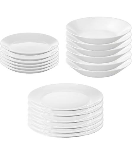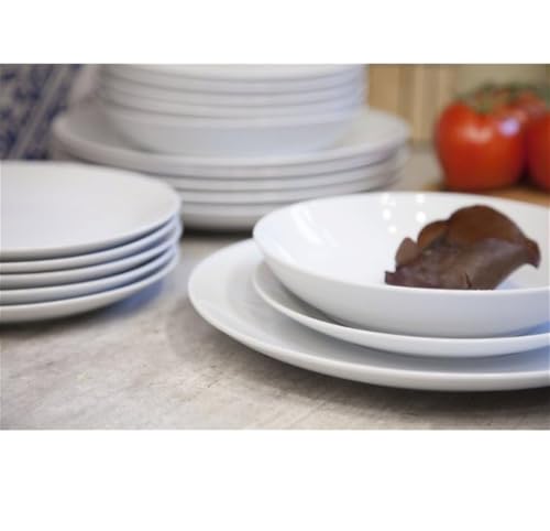 Generic - طقم عشاء بورسلين مكون من 18 قطعة، يتضمن 6 أطباق حلوى، 6 أطباق عميقة، 6 أطباق مسطحة، آمنة للاستخدام في غسالة الصحون والميكروويف، لون أبيض