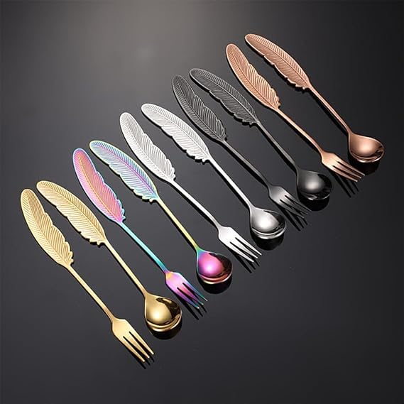- ✅【تصميم فاخر مستوحى من الريشة】 الطقم يتميز بتصميم ريشة ذهبي فاخر يضفي أناقة كبيرة على تقديم الحلويات والفواكه، ويجعل كل قطعة تلمع بطريقة جذابة، كما أن التصميم العملي يوفر قبضة مريحة أثناء الاستخدام، مما يسهل التقديم ويزيد من ثقة المستخدم، ويعطي شعورًا بالرفاهية والاحترافية في كل مناسبة منزلية أو احتفالية، ويجعل السفرة تبدو راقية وجذابة للضيوف من أول لحظة. ✨