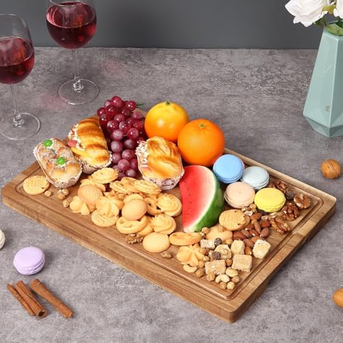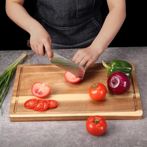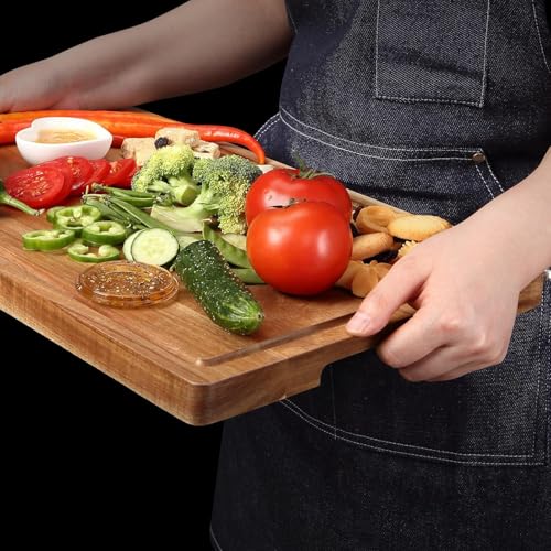 ExploreHorizon - لوح تقطيع كبير من الخشب الطبيعي مقاس 18 × 12 انش، لوح تقطيع سميك 1 انش مع اخدود عميق للعصير ومقابض جانبية، لوح تقطيع متعدد الاغراض للحوم والخضروات والفواكه والشاركوتيري