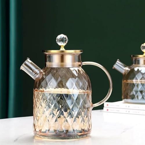 Generic - براد شاي مع غطاء من زجاج البوروسيليكات آمن للاستخدام على البوتاجاز وفي الميكروويف ومناسب للشاي والقهوة، شفشق للماء سعة 1.8 لتر