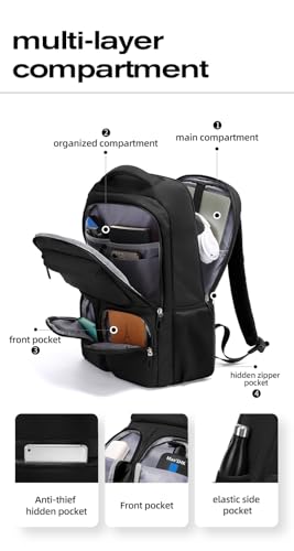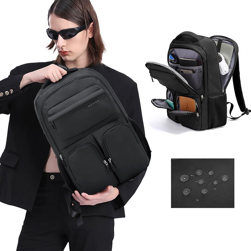 Generic - شنطة ظهر للاب توب للجنسين من البوليستر مقاومة للماء 1807، لون اسود