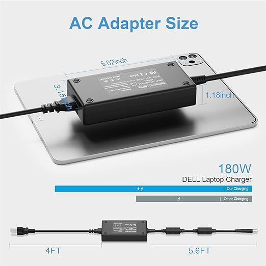 Generic - محول طاقة بقاعدة 180 واط - متوافق مع اجهزة لابتوب WD19 وD6000 وWD15 وTB15 وTB16 واجهزة اللابتوب الدقيقة (FA180PM111/HA180PM180)