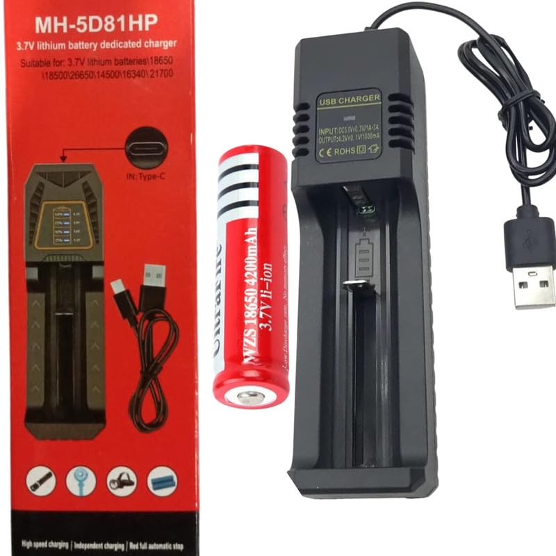 GENERIC - بطارية 18650 مع شاحن USB - حزمة ليثيوم 3.7 فولت قابلة لإعادة الشحن، شحن ذكي، حماية عكسية، حزمة طاقة صديقة للبيئة متعددة الأغراض