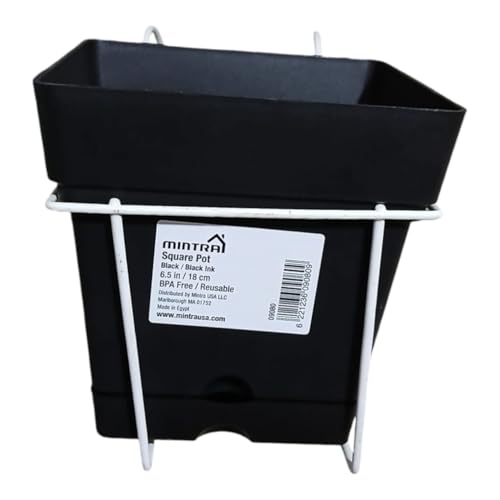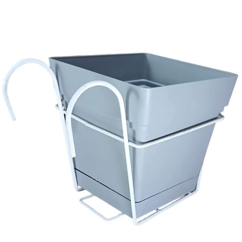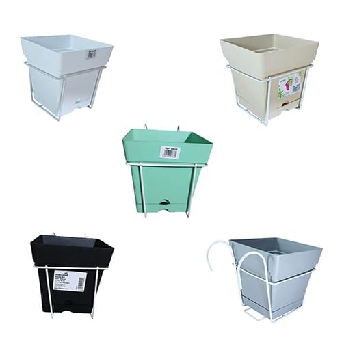 Generic - أوعية زراعة ملونة مربعة الشكل مقاس 18 سم مزودة بطبق مدمج وحوامل معدنية للتعليق-عدد 5 (زماديات)