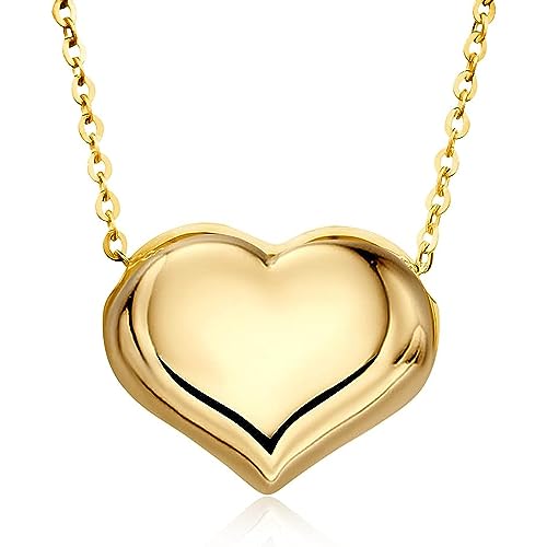 Generic - عقد سلسلة رولو من الستانلس ستيل بدلاية على شكل قلب عائم منتفخ مطلي بالذهب عيار 18 قيراط مجوهرات حب للأم والصديقة والأبنة والتخرج والذكرى السنوية صنع في ايطاليا بواسطة جوليا ستور ستانلس بدون للنساء