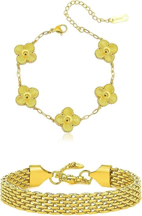 Generic - سوار ربط شبكي ايطالي من الذهب عيار 18 قيراط سوار بسمارك، سوار متعرج مضفر 4.4 ملم، هدية للكريسماس وعيد الحب للنساء