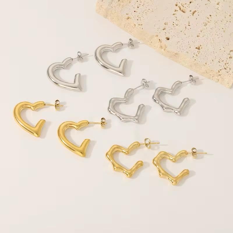Generic - حلق من الاستالس ستيل 316l علي شكل قلي مطلي بالذهب عيار18 قيراط