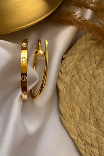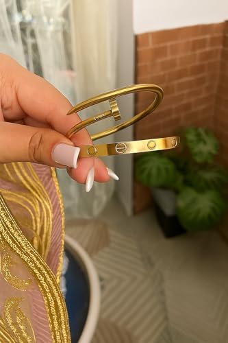 Generic - مجموعة اساور حلقية من الستانلس ستيل 316L مطلية بالذهب عيار 18 قيراط بتصميم عصري فاخر للمشاهير والحب، اساور الصداقة والاظافر الاكثر مبيعا