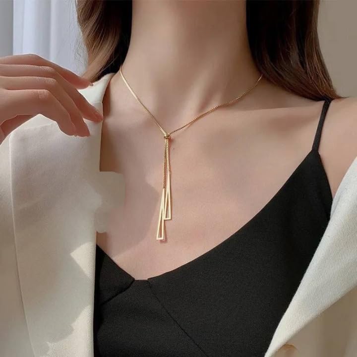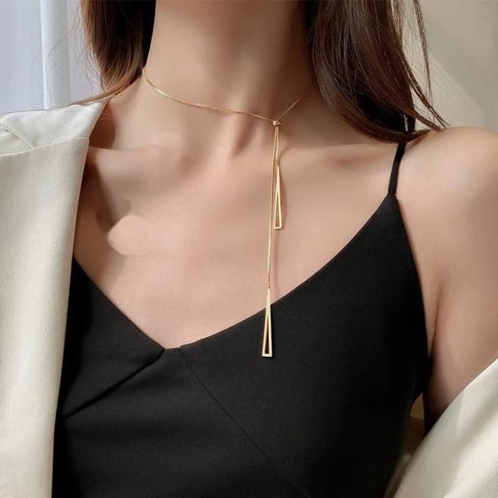 Generic - عقد بقلادة مثلثة من الستانلس ستيل 316L مطلي بالذهب عيار 18 قيراط للنساء والبنات بتصميم عصري جديد وسلسلة قابلة للتعديل