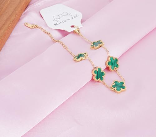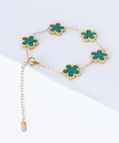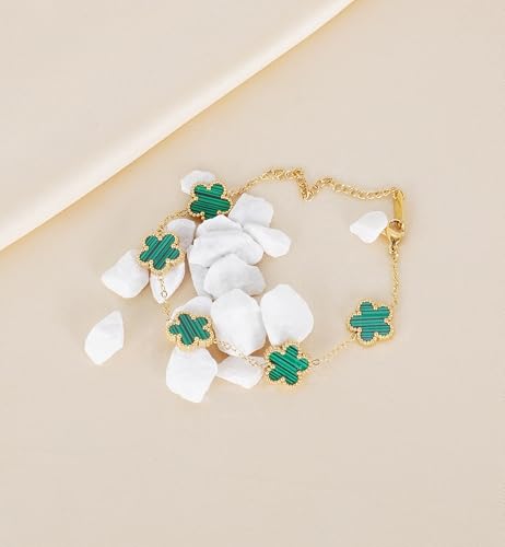 generic - سوار مطلي بالذهب عيار 18 قيراط 4 اوراق برسيم فاخر ومتين للنساء