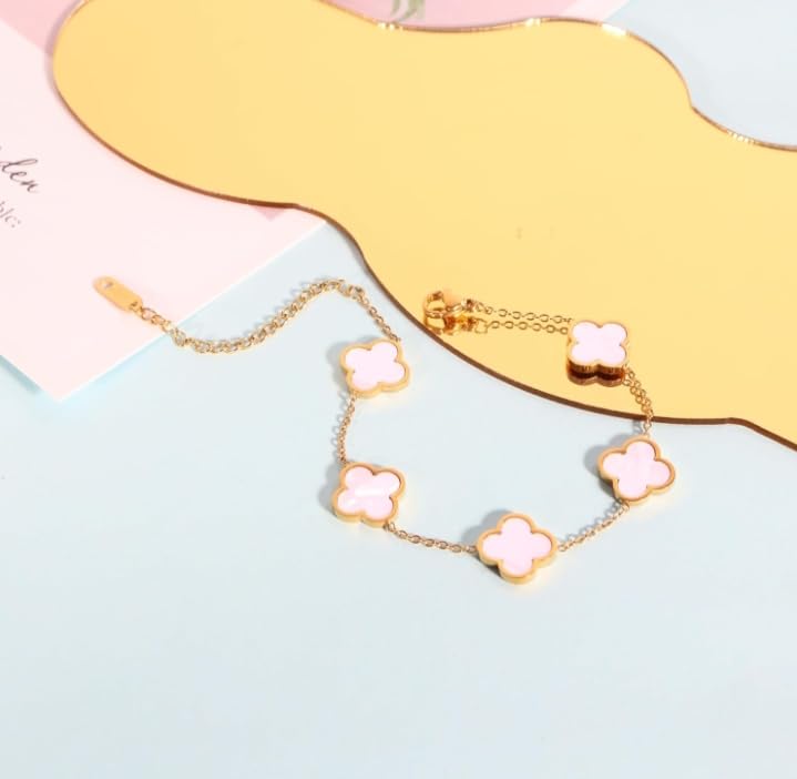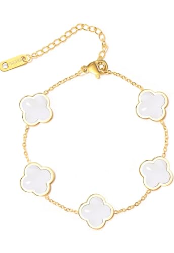 Generic - سوار بتصميم زهرة البرسيم مطلي بالذهب عيار 18 قيراط للنساء بلون أبيض أساور بحلقات على شكل وردة بأربع أوراق شجر ، هدايا مجوهرات عصرية