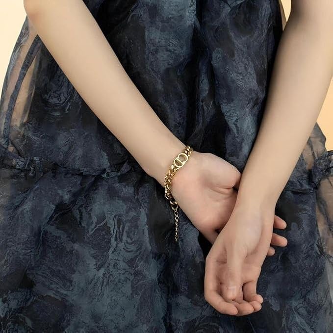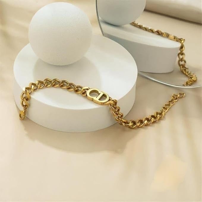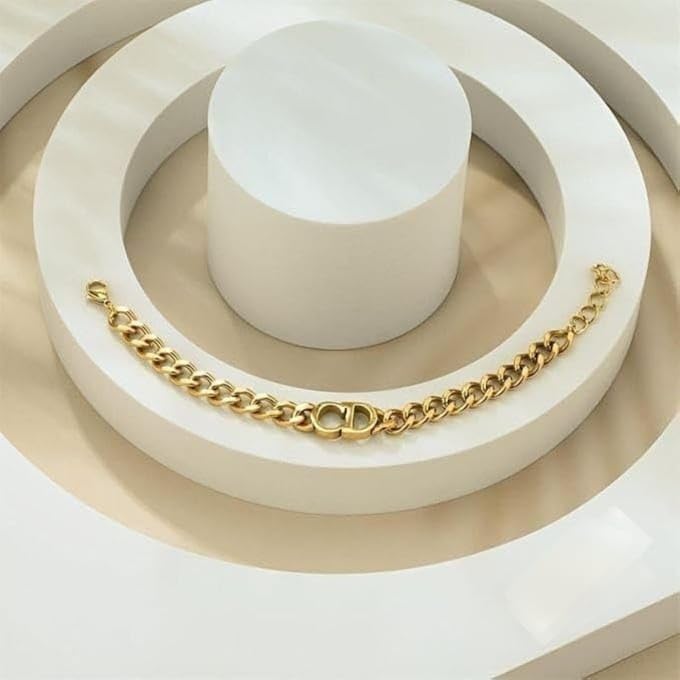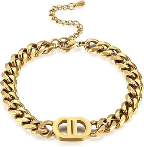 Generic - اسوار سي دي من الستانلس ستيل النقي مطلية بالذهب عيار 18 قيراط، اساور على شكل قرص مضغوط، سوار سلسلة سميك