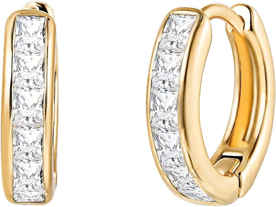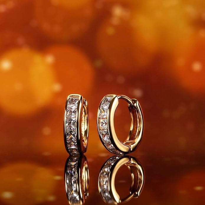 Generic - حلق دائري ومطلي بالذهب عيار 18 قيراط ومرصع باحجار كريستال وزركونيا مكعب ، متعدد الالوان، للنساء