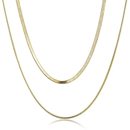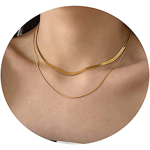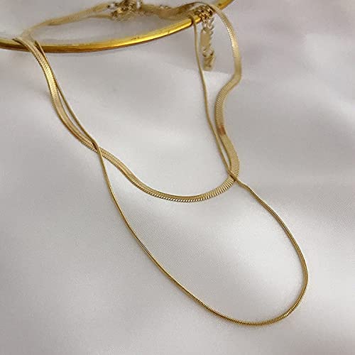 Generic - سلسلة متعرجة ومزدوجة الطبقات شكل جلد ثعبان للنساء من ستانلس ستيل مطلي بالذهب 18 قيراط جوليا ستور