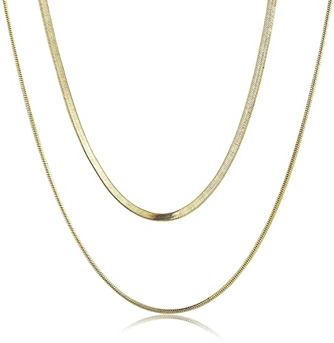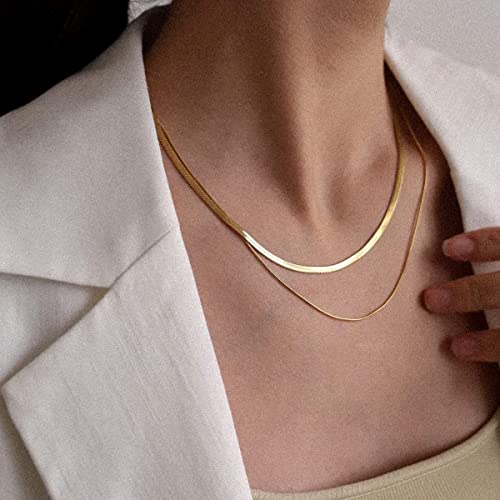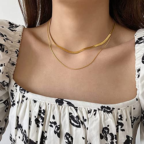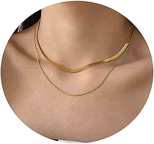Generic - سلسلة متعرجة ومزدوجة الطبقات وضيقة على شكل ثعبان للنساء من ستانلس ستيل مطلي بالذهب 18 قيراط تو ستايلش