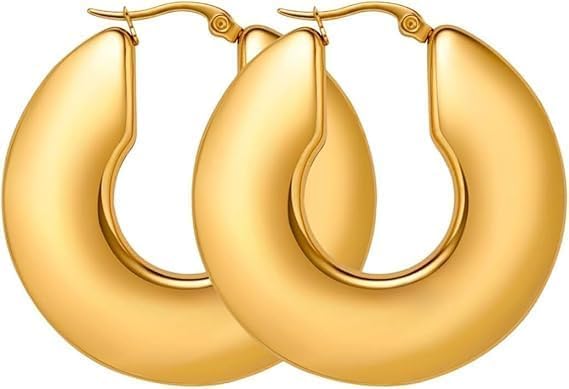 Generic - أقراط حلقية دائرية من الستانلس ستيل مطلي بالذهب عيار 18 قيراط، تصميم عصري أنيق خفيف الوزن، هدية للنساء