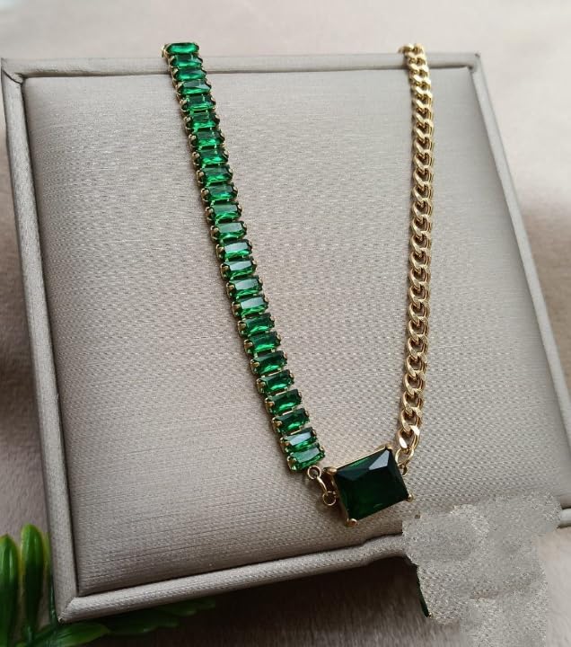 Generic - قلادة تنس مطلية بالذهب العيار 18 قيراط | سلسلة نصفين مستطيله مرصعة بالزركونيا المكعبة 4.0 ملم للنساء والرجال