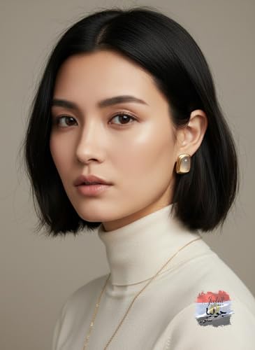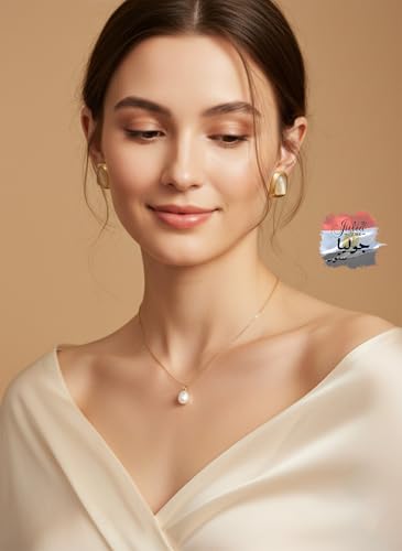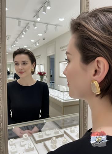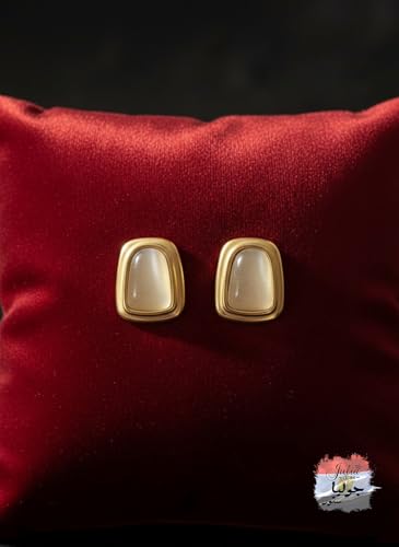 Julia Store - اقراط مرصعة باللؤلؤ العتيقة مطلية بالذهب عيار 18 قيراط للنساء من جوليا ستور، اقراط لؤلؤ بتصميم هندسي غير منتظم، اقراط لؤلؤ خفيفة الوزن