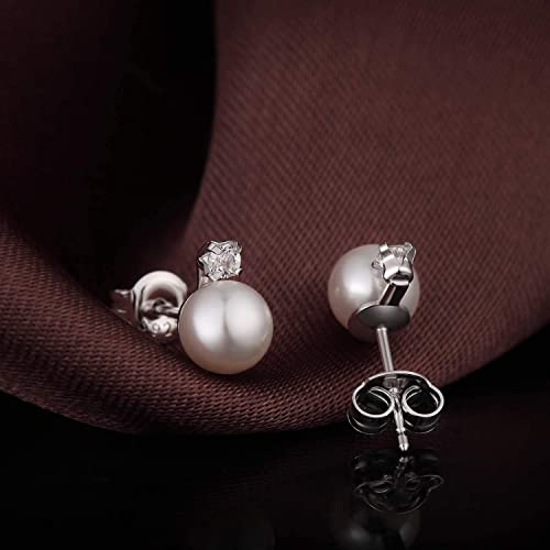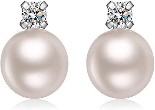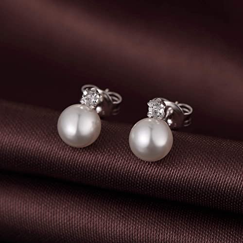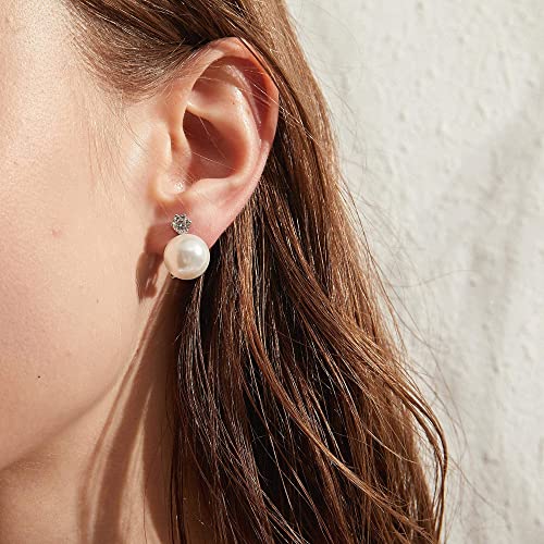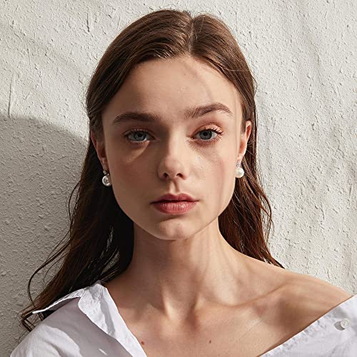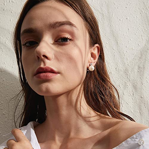Jiahanzb - اقراط مرصعة باللؤلؤ مطلية بالذهب الابيض عيار 18 قيراط من الفضة الاسترليني عيار 925 لا تسبب الحساسية للنساء والفتيات