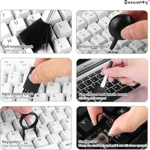 - ✅ 【تنظيف دقيق للمساحات الصغيرة】تتميز هذه المجموعة بفرش رفيعة للغاية ورؤوس دقيقة تزيل الغبار والأوساخ المتراكمة من المناطق الضيقة مثل تجويفات الكيبوردات وشبكات سماعات الأذن ومنافذ الشحن، بسهولة ودون إلحاق الضرر بالمكونات الحساسة. 🎯