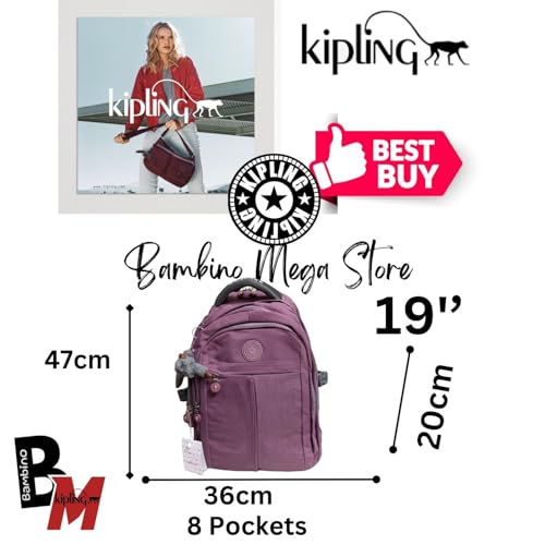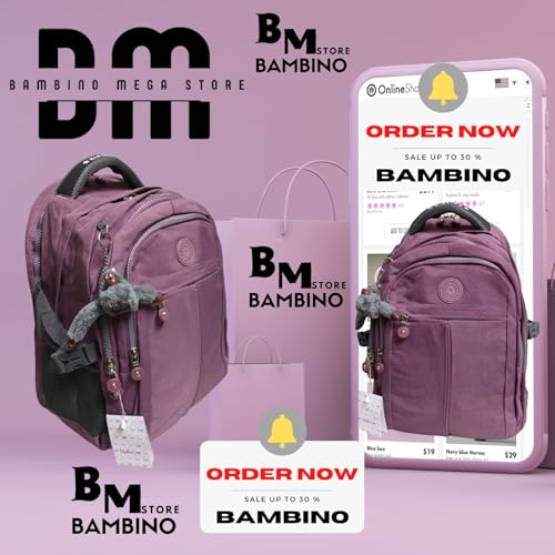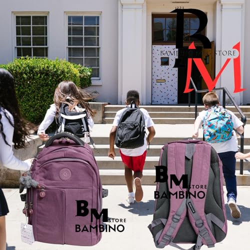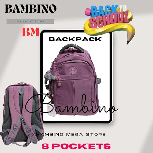 Generic - شنطة ظهر مدرسية 48 سم بـ 8 جيوب، شنطة سفر للاب توب مقاومة للمياه للأولاد والبنات والمراهقين (لون موف فاتح)